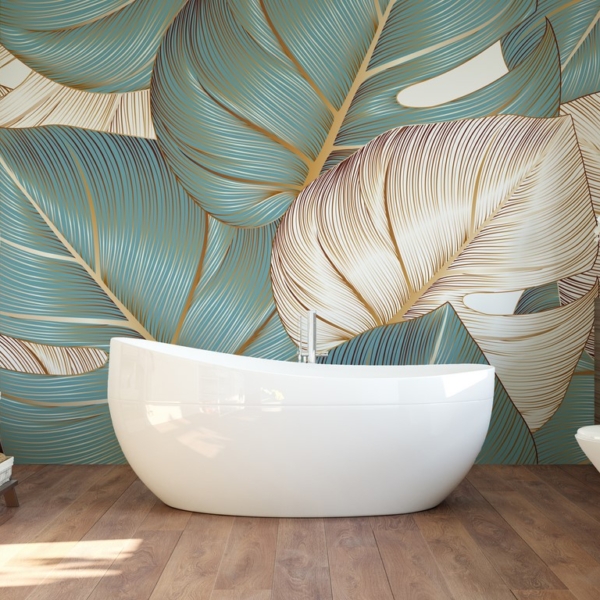- 3D, BADRUM, Fototapet, Rum, TROPISKA LÖV