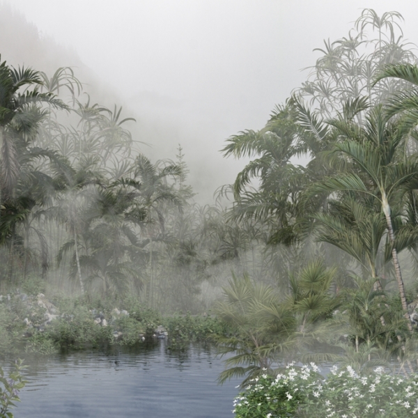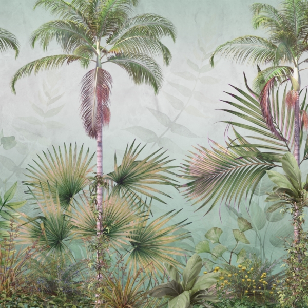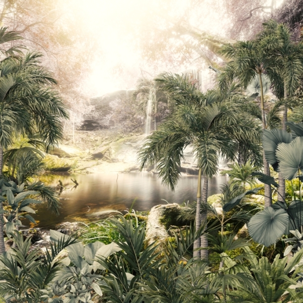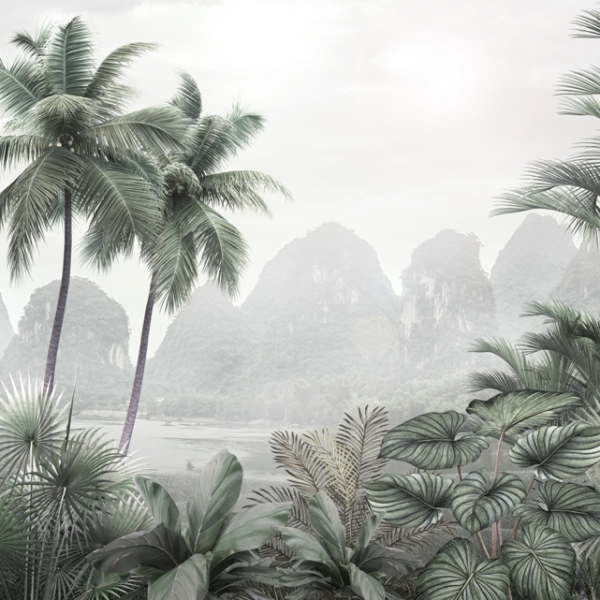 - Produktnummer: 12070212345 En väggmålning med anknytning till naturen. Den föreställer en sjö gömd bland exotisk vegetation. Palmer är inte det enda man kan se på den. Fina vita blommor lyser upp helheten och ger en lätt touch. Hålls i dämpade färger. Därför behöver du inte vara rädd för att den ska dominera inredningen. Den kan användas för att arrangera en…