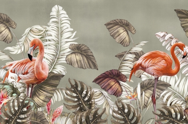 - 3D, BADRUM, BLOMMOR, DJUR, Fototapet, NATUR, Rum, SOVRUM, TROPISKA LÖV, VARDAGSRUM