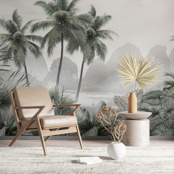 - 3D, Fototapet, KONTORET, MURAL, NATUR, Rum, SOVRUM, TROPISKA LÖV, VARDAGSRUM