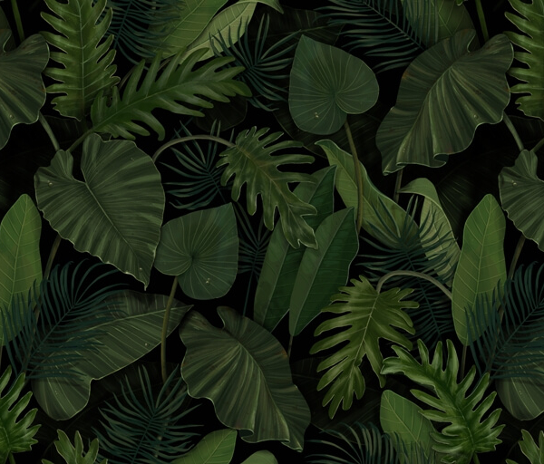 - 3D, Fototapet, Rum, SOVRUM, TROPISKA LÖV