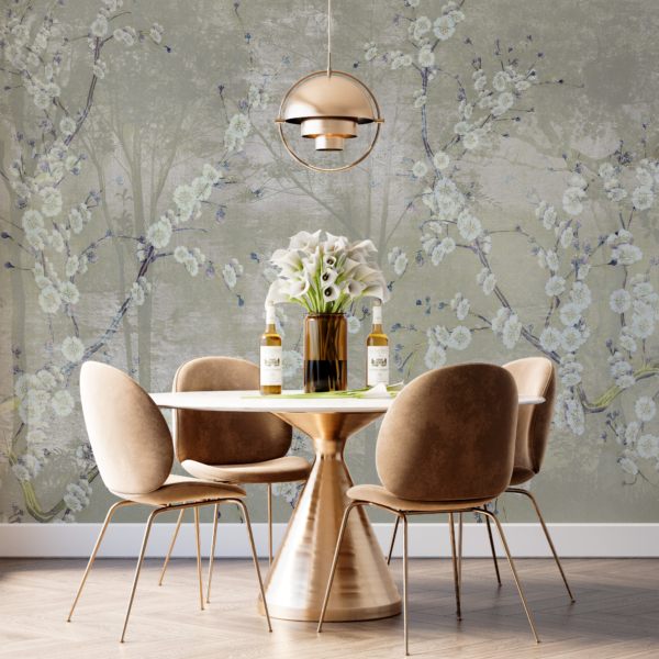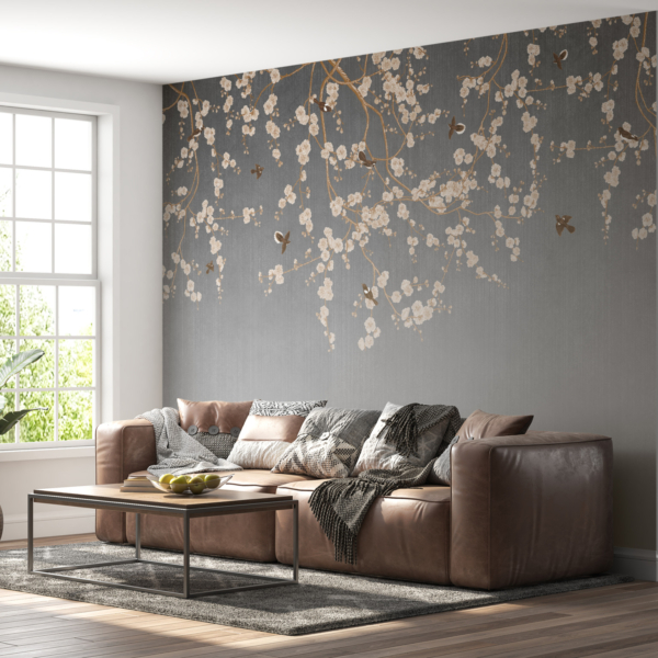 Livfulla blommotiv har en distinkt karaktär, så takt och måttfullhet bör utövas när de införlivas i ett arrangemang. Om du vill att blommiga tapeter i ditt vardagsrum ska vara mittpunkten i din inredning, gå till djärva färger och detaljerade mönster. Stora, tropiska växter med färgglada fåglar eller fjärilar passar bra ihop med inredning i enhetliga, dämpade färger. Delikata, pastellfärgade rutiga mönster ger å andra sidan en bra bakgrund för djärvare designelement – sådana varianter kan också användas med framgång i sovrummet.