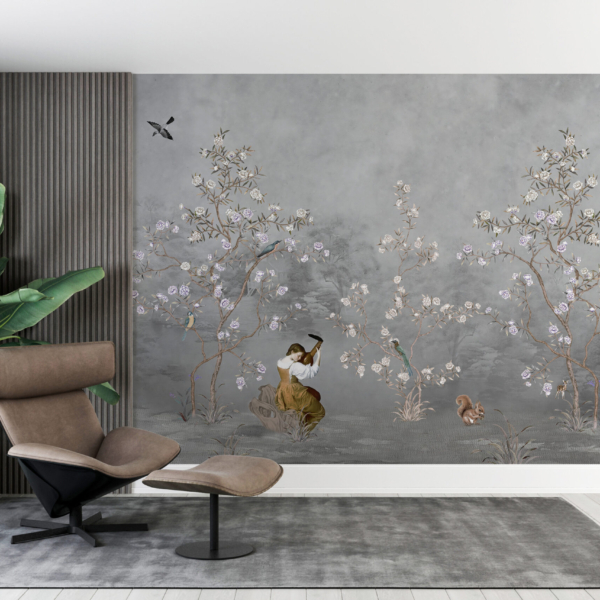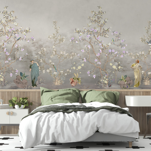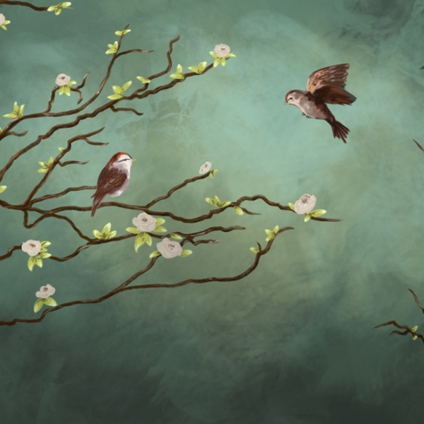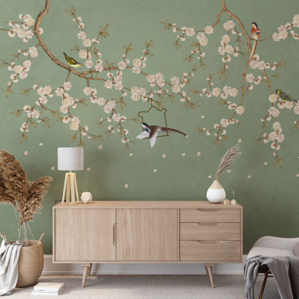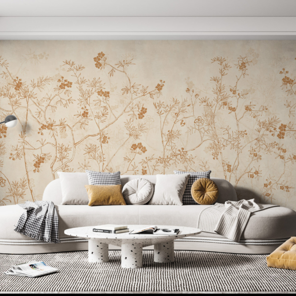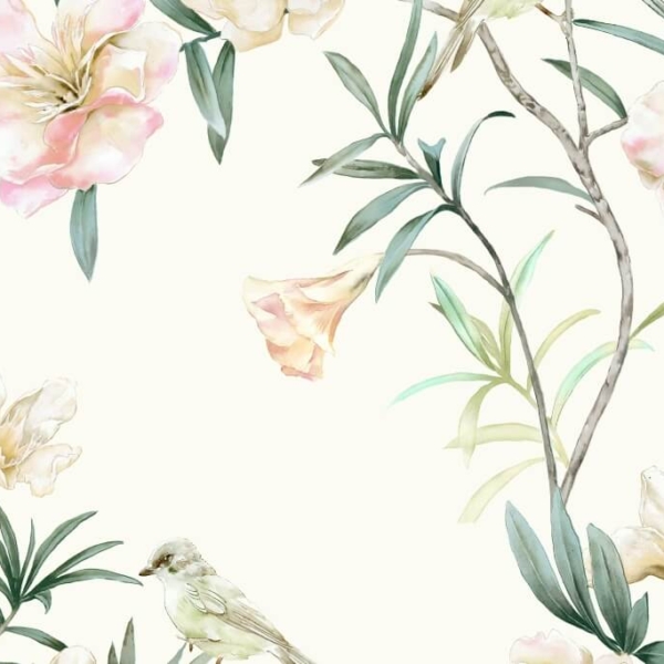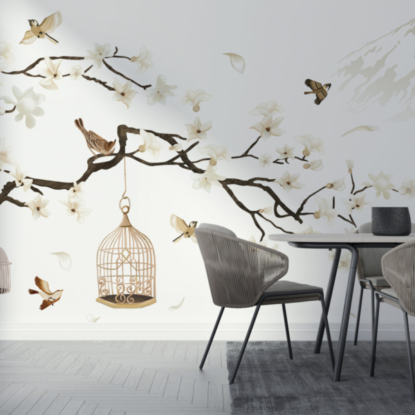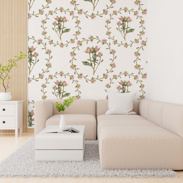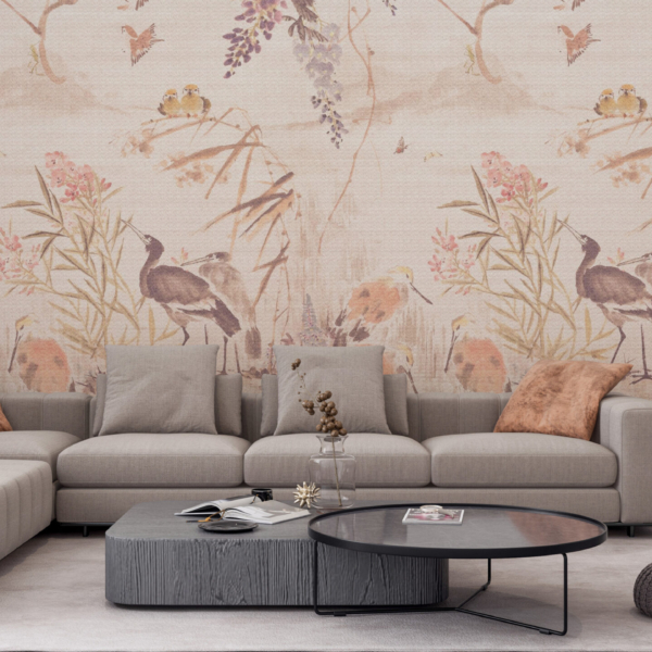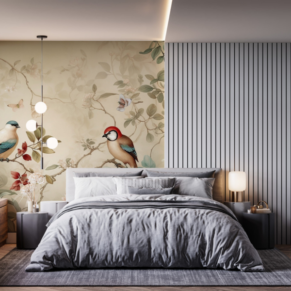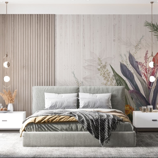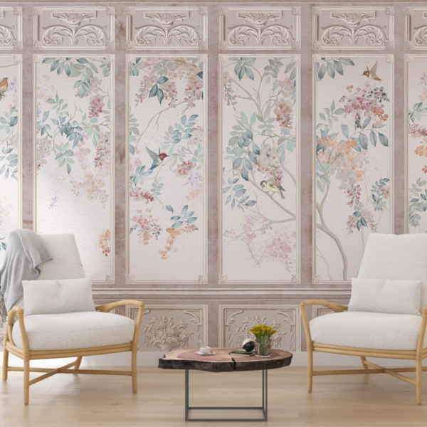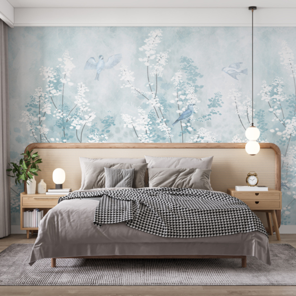 Livfulla blommotiv har en distinkt karaktär, så takt och måttfullhet bör utövas när de införlivas i ett arrangemang. Om du vill att blommiga tapeter i ditt vardagsrum ska vara mittpunkten i din inredning, gå till djärva färger och detaljerade mönster. Stora, tropiska växter med färgglada fåglar eller fjärilar passar bra ihop med inredning i enhetliga, dämpade färger. Delikata, pastellfärgade rutiga mönster ger å andra sidan en bra bakgrund för djärvare designelement – sådana varianter kan också användas med framgång i sovrummet.