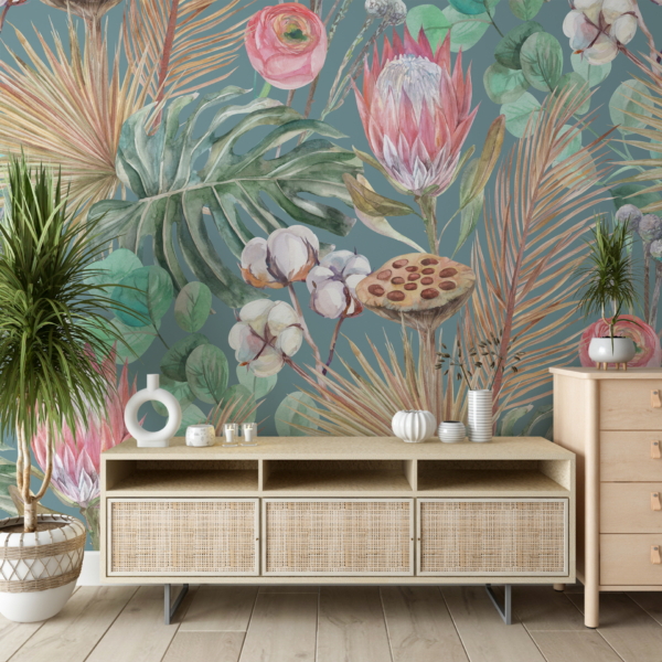 - BLOMMOR, BOHO, Fototapet, HALL, Rum, SOVRUM, TROPISKA LÖV, VARDAGSRUM