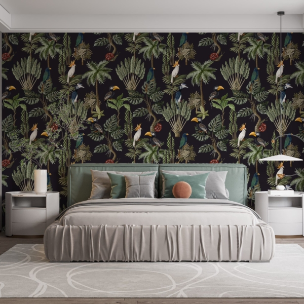 - 3D, BADRUM, BLOMMOR, DJUR, Fototapet, NATUR, Rum, SOVRUM, TROPISKA LÖV, VARDAGSRUM