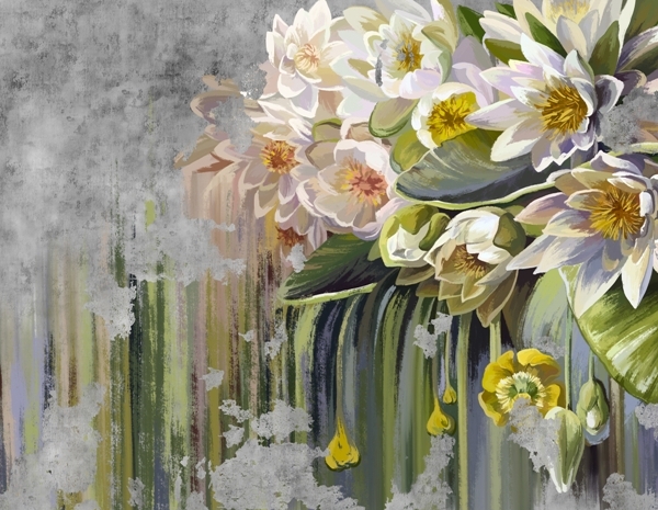 - Produktnummer: 11973469521 Denna väggmålning har utformats med stor omsorg och är idealisk för alla rum där elegans råder. Huvudmotivet är en bukett med vita näckrosor. De är placerade på en originell, lätt abstrakt bakgrund, som smälter perfekt ihop med blommorna. Fototapeten är perfekt för vardagsrummet och kan också med fördel placeras i sovrummet. Den kan bli en utmärkt dekoration även…
