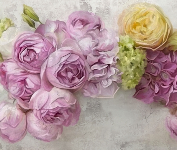- Produktnummer: 11841349601 En väggmålning perfekt för alla blomsterälskare. Det föreställer en bukett lila rosor mot en pastellfärgad bakgrund i grå nyanser. Det övergripande utseendet är extremt elegant och glädjer med en touch av romantik. Denna fototapet är lämplig för alla som älskar romantik i inredningen. Det kommer att vara idealiskt för rum med referenser till element i den engelska stilen.…
