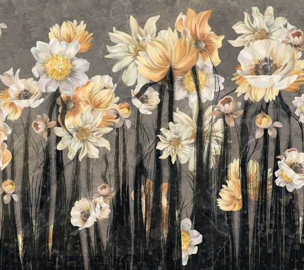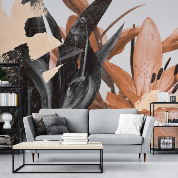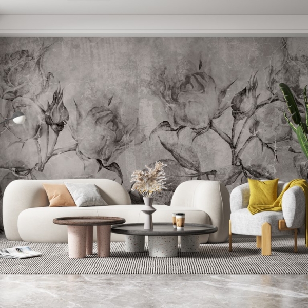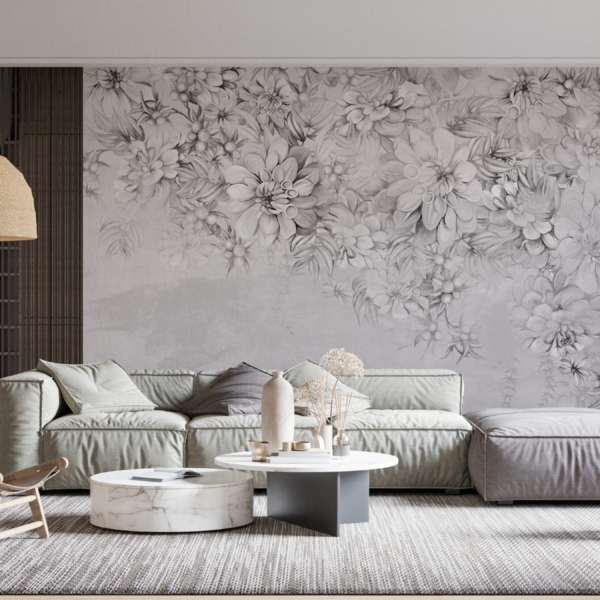 I LaMural-butiken hittar du också mindre typiska förslag, till exempel en väggmålning med stora blommor som är utformad som en svartvit skiss eller en oljemålning. Denna lösning ger din lägenhet en konstnärlig touch. Dessutom kan du beställa varianter med canvastexturer eller penseldrag från oss. Detta gör det enkelt att uppnå ett extremt slående väggutseende.