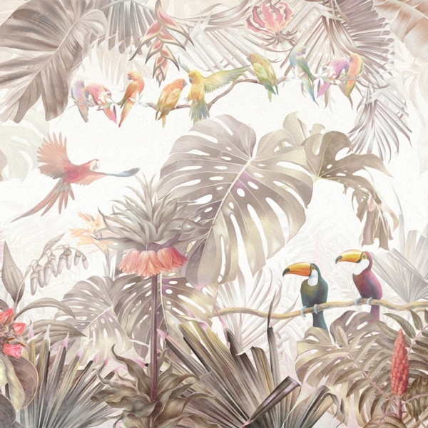 - BLOMMOR, DJUR, Fototapet, Rum, TROPISKA LÖV, VARDAGSRUM