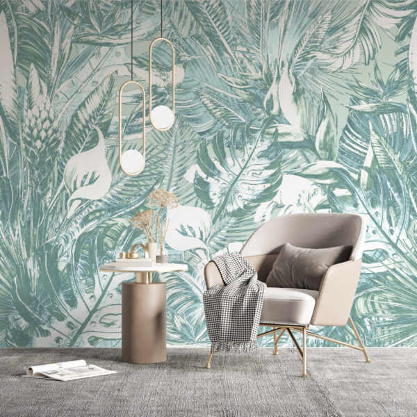 - BLOMMOR, Fototapet, KONTORET, MURAL, NATUR, Rum, TROPISKA LÖV, VARDAGSRUM