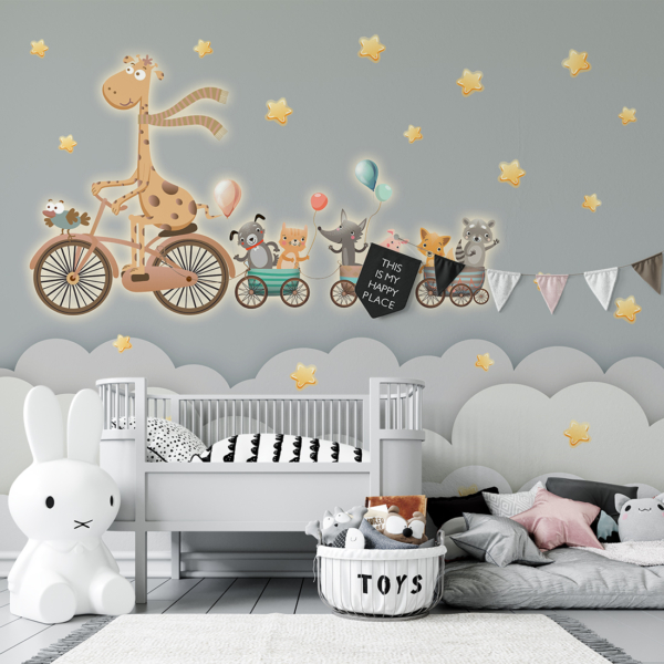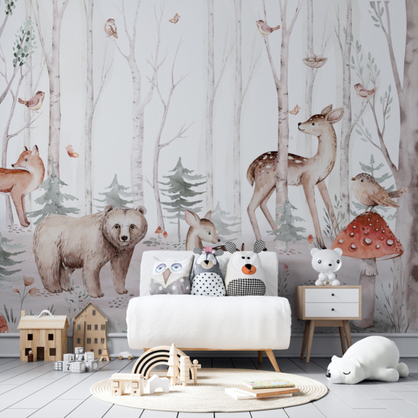 En särskild plats i vårt erbjudande intas av förslag som är avsedda för de yngsta. Vi erbjuder ett brett urval av spännande design för småbarnsrummet. Tecknad stil, pastellfärger och tillverkning med säkra material – detta är kännetecknen för varje LaMural barn djur väggmålning. Här hittar du bedårande motiv med skogsmänniskor, vänliga nallar, sovande kattungar och mycket annat roligt!