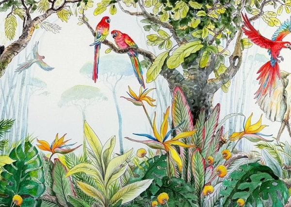 - 3D, BLOMMOR, DJUR, Fototapet, KONTORET, NATUR, Rum, TROPISKA LÖV, VARDAGSRUM