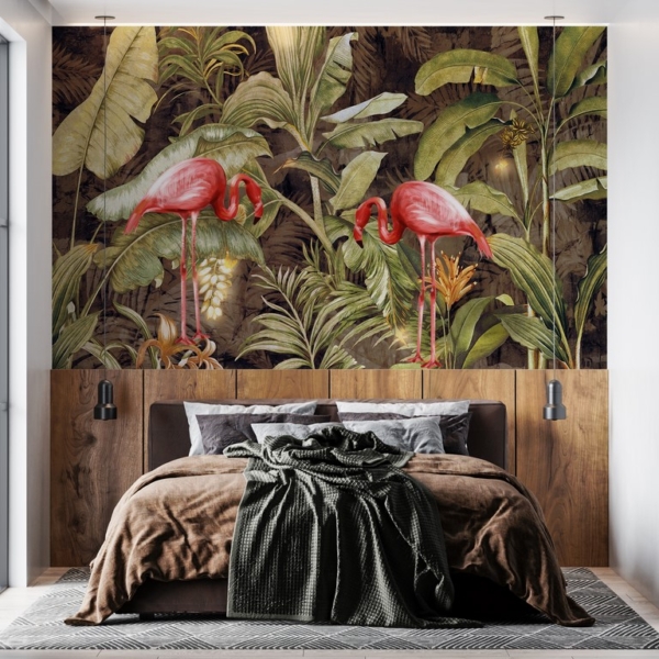 - BLOMMOR, DJUR, Fototapet, NATUR, Rum, SOVRUM, TROPISKA LÖV, VARDAGSRUM