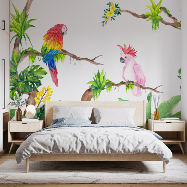 - 3D, BADRUM, BLOMMOR, DJUR, Fototapet, NATUR, Rum, SOVRUM, TROPISKA LÖV, VARDAGSRUM