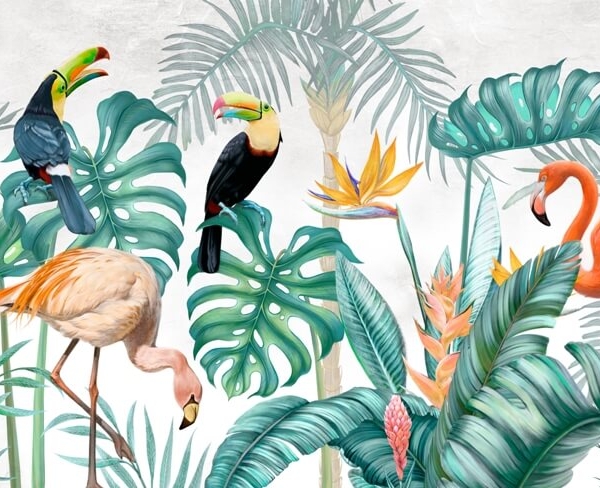 - BLOMMOR, DJUR, Fototapet, Rum, TROPISKA LÖV, VARDAGSRUM