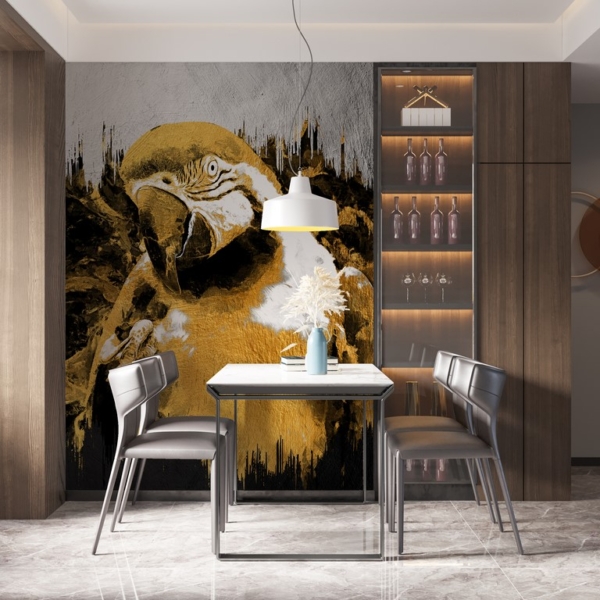 - Produktnummer: 12109079709 En väggmålning som passar originella människor som inte är rädda för starka, uttrycksfulla accenter i inredningen. Nästan hela utrymmet fylls av en papegoja, vars fjädrar har en intensivt gul färg. Den har tonats ned lite med tillägg av vita och svarta element. Den bakgrund som ligger till grund för Papegojan är delvis grå och delvis svart. Detta skapar…