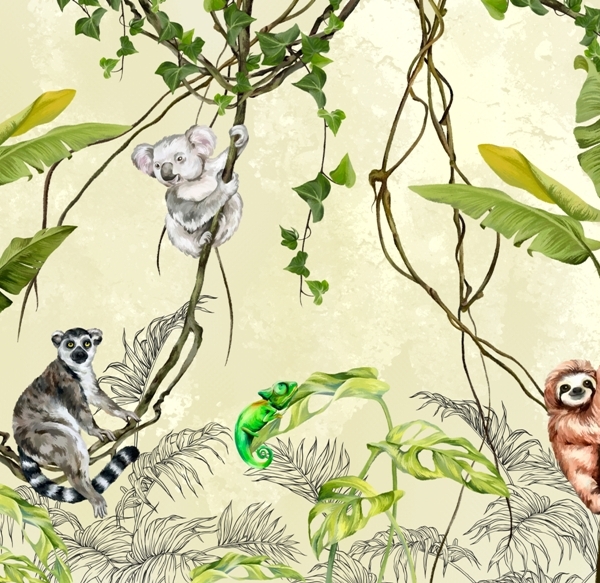 - DJUR, Fototapet, NATUR, Rum, SOVRUM, TROPISKA LÖV