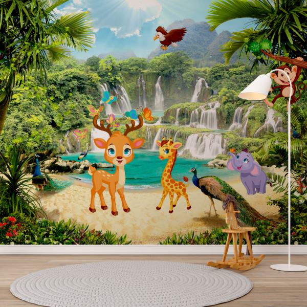 - 3D, BADRUM, DJUR, Fototapet, KONTORET, MURAL, NATUR, Rum, TROPISKA LÖV, VARDAGSRUM