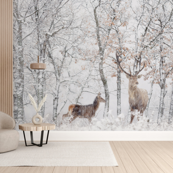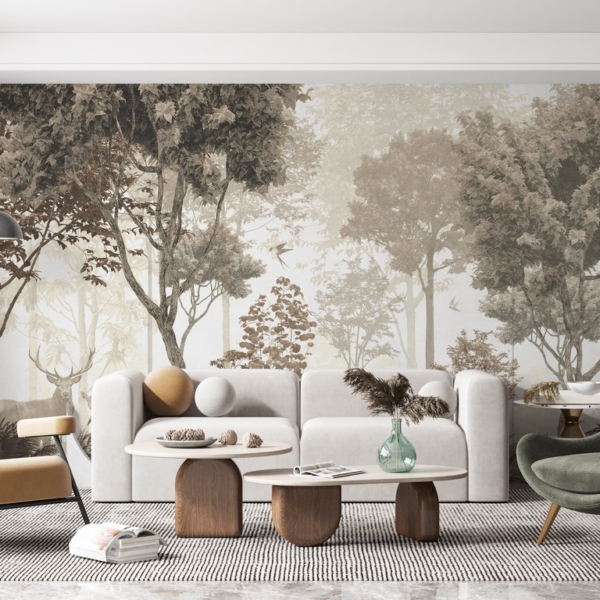 - Produktnummer: 11899089857 Denna väggmålning har en lite mystisk atmosfär och föreställer hjortar i en mörk skog. Den sepiatonade färgskalan gör att den ser extremt elegant och stilfull ut. Det är värt att ta till om du letar efter ett originellt sätt att avsluta en vägg i din lägenhet. Den fungerar bra i alla rum. Med hjälp av den kan vardagsrummet,…