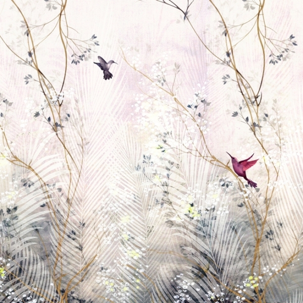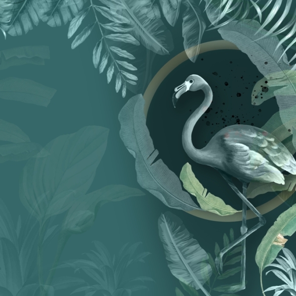 - BLOMMOR, DJUR, Fototapet, Rum, TROPISKA LÖV, VARDAGSRUM