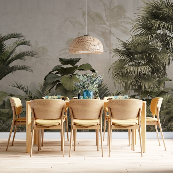 - Produktnummer: 12001428363 En väggmålning som har utformats för tropiska växtälskare som letar efter mångsidiga, eleganta lösningar. Den grå färgtonen kan enkelt kombineras med inredningsdetaljer i andra färger. Den kan med fördel kombineras med pastellfärger och blir en utmärkt kombination med orange, rött eller guld. Det ger nästan obegränsade designmöjligheter. Tillverkad för att se bra ut även långt efter installationen.
