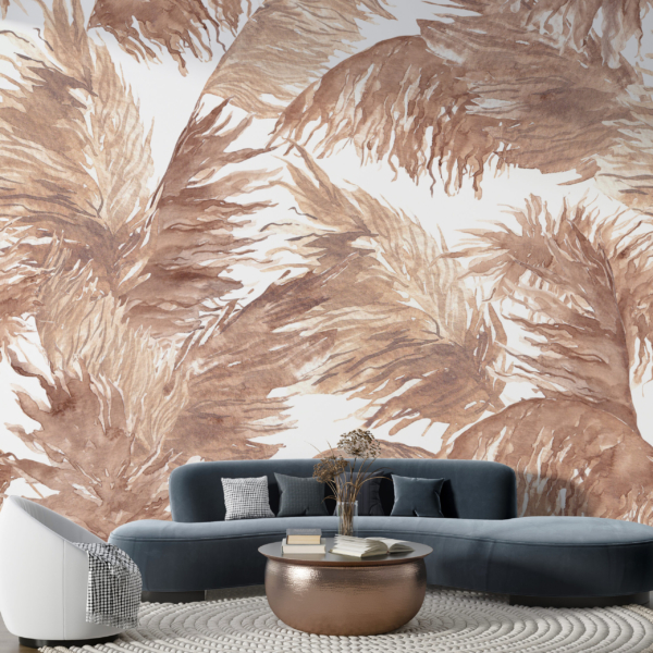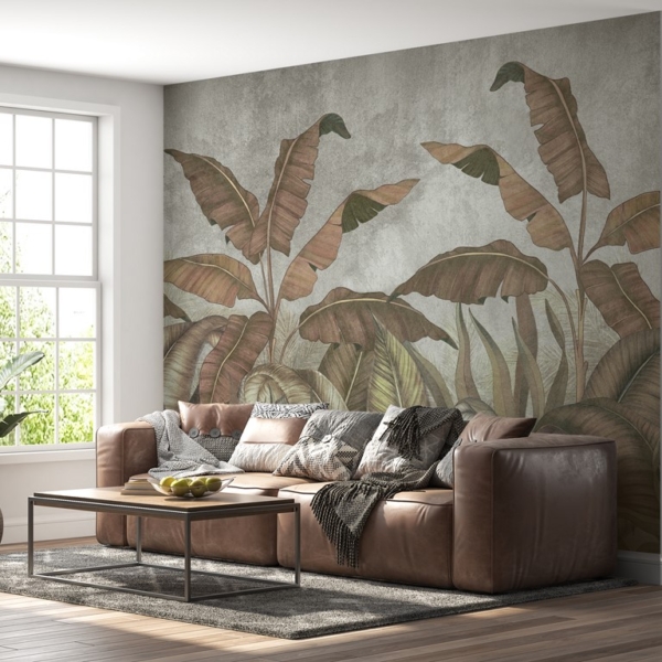 - Produktnummer: 1465351091 Denna väggmålning har utformats med stor omsorg och föreställer exotiska blad bananträd. Den är därför lämplig för personer som vill ha en introducera en antydan till exotisk känsla. Det fungerar också bra i utrymmet kontor, som är tänkt att se originellt och samtidigt elegant ut. Upprätthålls i extremt mångsidig brun färgskala, vilket gör det enkelt att kombinera med…