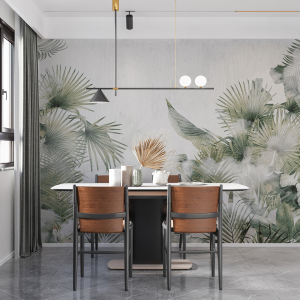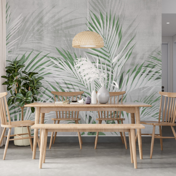 - Produktnummer: 12001428363 En väggmålning som har utformats för tropiska växtälskare som letar efter mångsidiga, eleganta lösningar. Den grå färgtonen kan enkelt kombineras med inredningsdetaljer i andra färger. Den kan med fördel kombineras med pastellfärger och blir en utmärkt kombination med orange, rött eller guld. Det ger nästan obegränsade designmöjligheter. Tillverkad för att se bra ut även långt efter installationen.