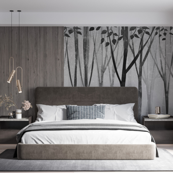- Produktnummer: 12141717337 En väggmålning i en rå, cool stil. Den föreställer exotiska träd som är insvepta i en mystisk dimma. De svarta träden avtecknar sig tydligt mot den betydligt ljusare bakgrunden, vilket gör dem mycket synliga. Fototapeten är perfekt för alla inredning i modern stil. Den kan med fördel kombineras med lika dämpade färger som med intensiva och mättade färger.…