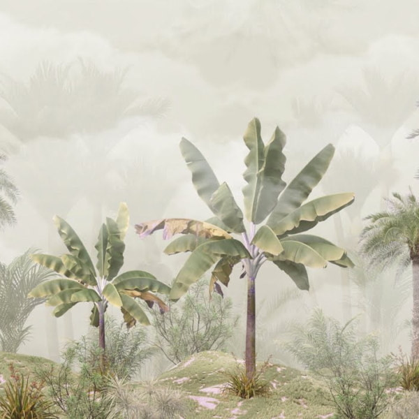 - Produktnummer: 12086151809 En ovanlig väggmålning som skulle vara perfekt för olika rum i huset. Den pryds av ett motiv med bananträd i dimman. Den övergripande designen har hållits i en dämpad, extremt elegant färgskala. Det gör den till det rätta valet när du vill skapa lite lugn och ro i ett rum. Blekgröna, grå, bruna - dessa färger är perfekta…