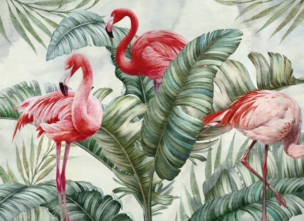 - BLOMMOR, DJUR, Fototapet, NATUR, Rum, SOVRUM, TROPISKA LÖV, VARDAGSRUM