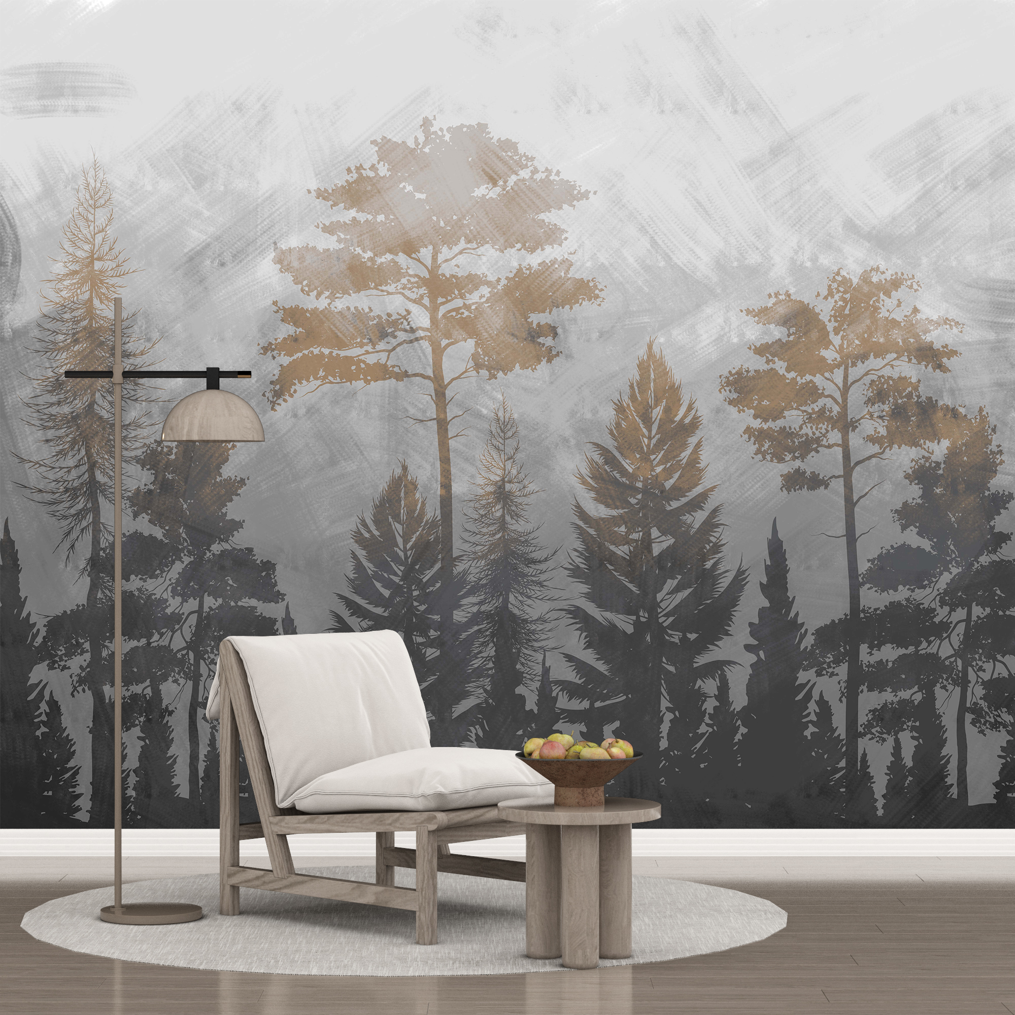 Förflytta dig till en magisk skog med denna charmiga suddiga skogstapet. Den är perfekt för sovrummet, vardagsrummet eller barnrummet och skapar en behaglig atmosfär av närhet till naturen i din inredning.