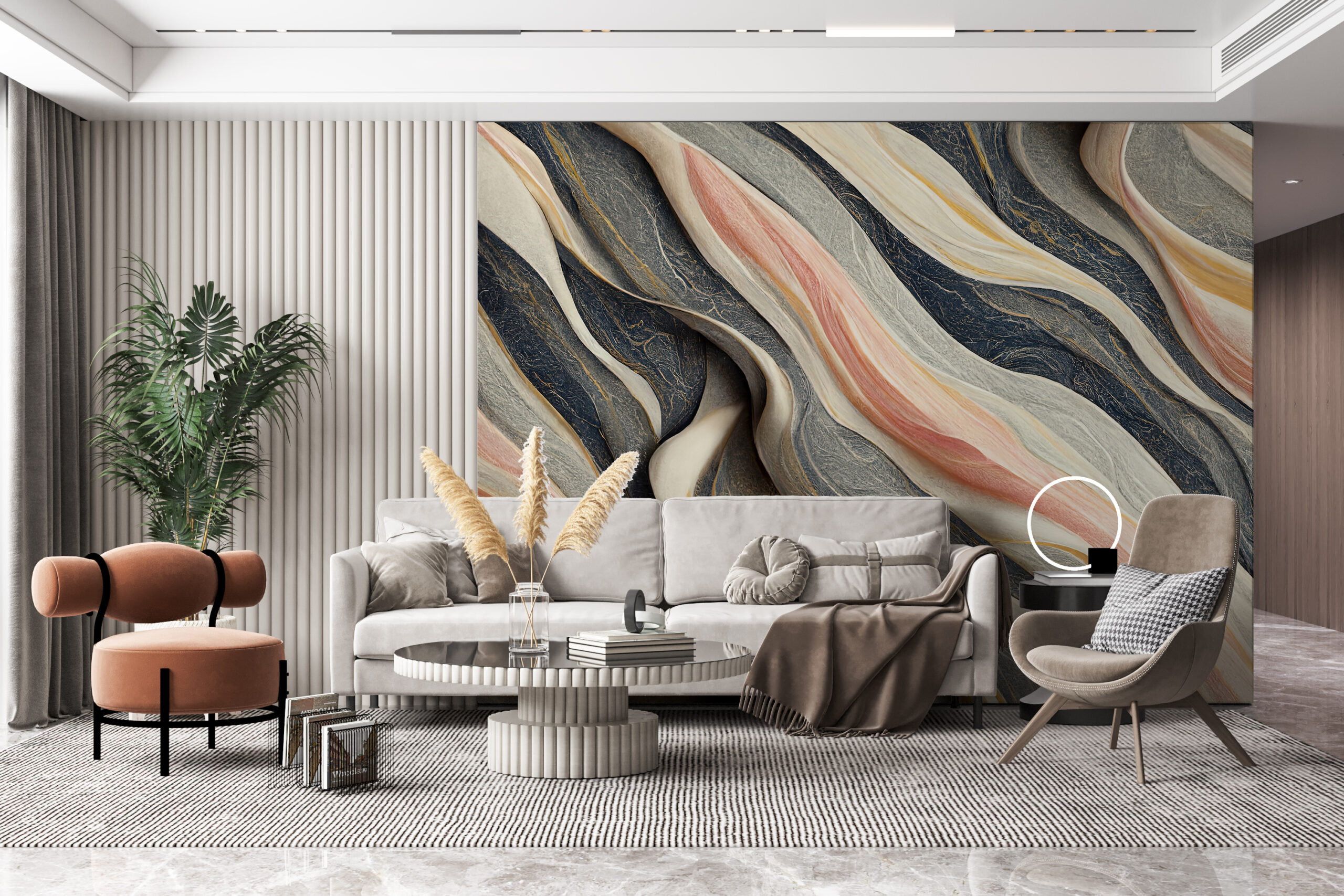 Denna väggmålning har abstrakta mönster i vågiga former som ger en unik touch till alla rum. Med en kombination av olika färger och linjer kommer detta konstverk att göra din vägg till ett riktigt konstverk.
