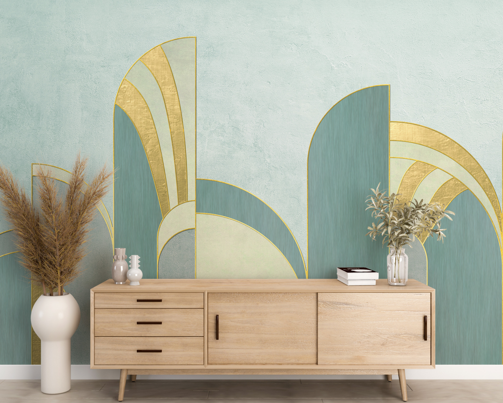 Beställ ”Blue Geometry Mural” idag och förvandla din interiör på ett enkelt och effektivt sätt!