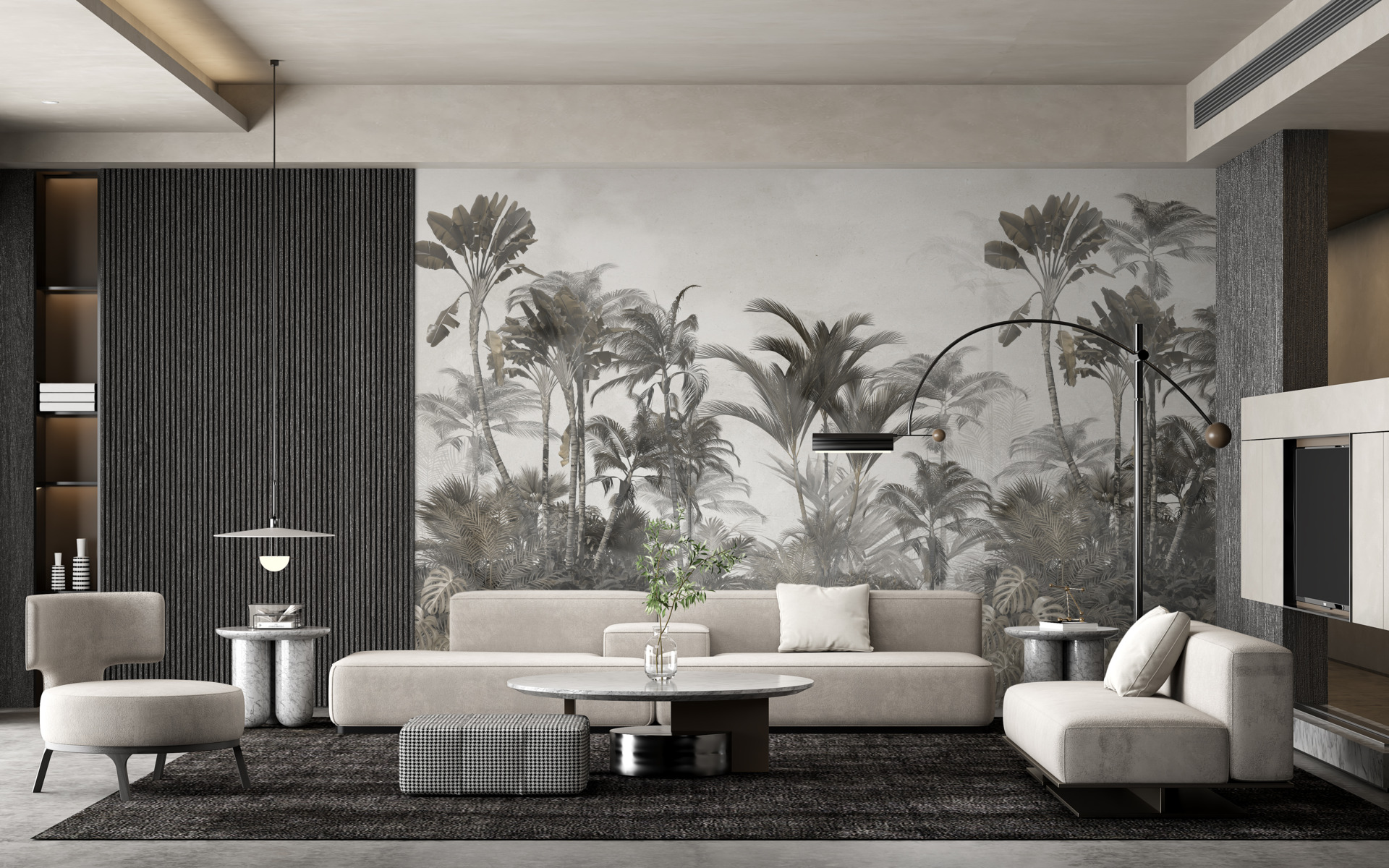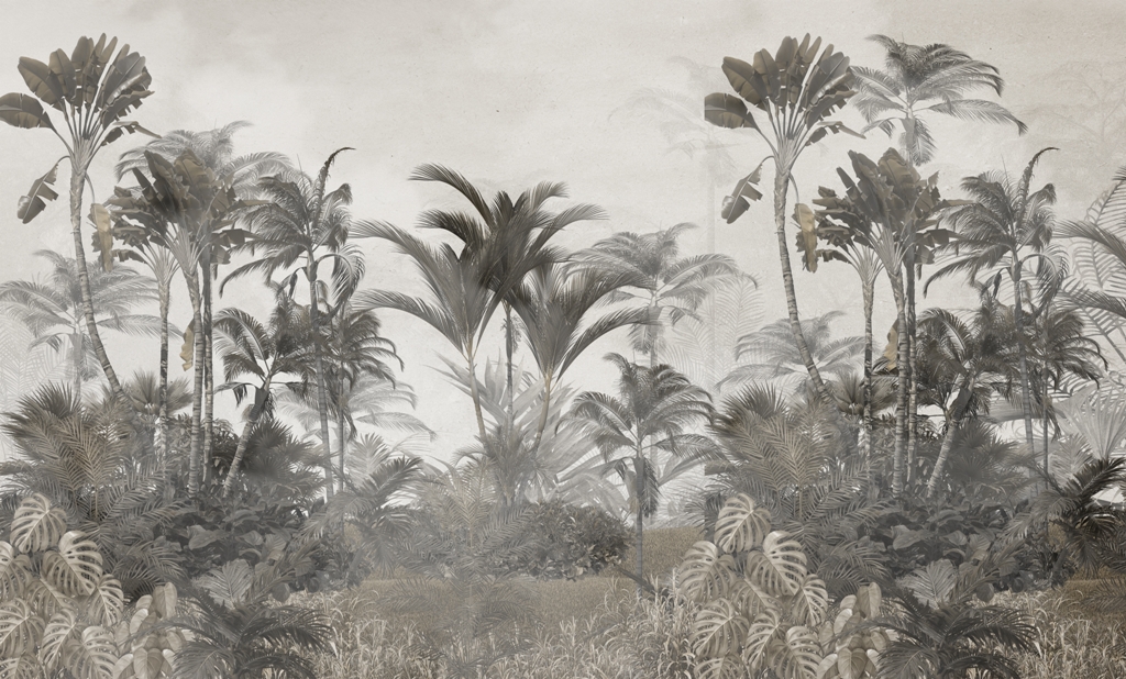 Den färglösa Jungle väggmålningen är idealisk för älskare av interiörer i minimalistisk stil. Denna ovanliga tapet gör att du kan skapa en unik atmosfär i alla rum och lägga till en subtil touch.