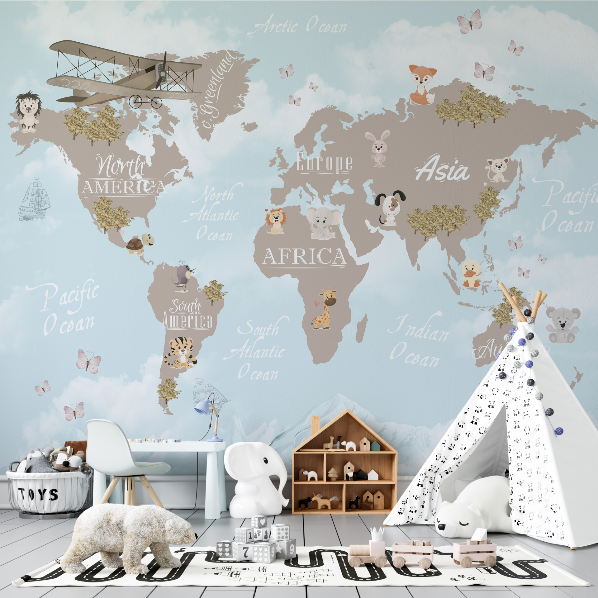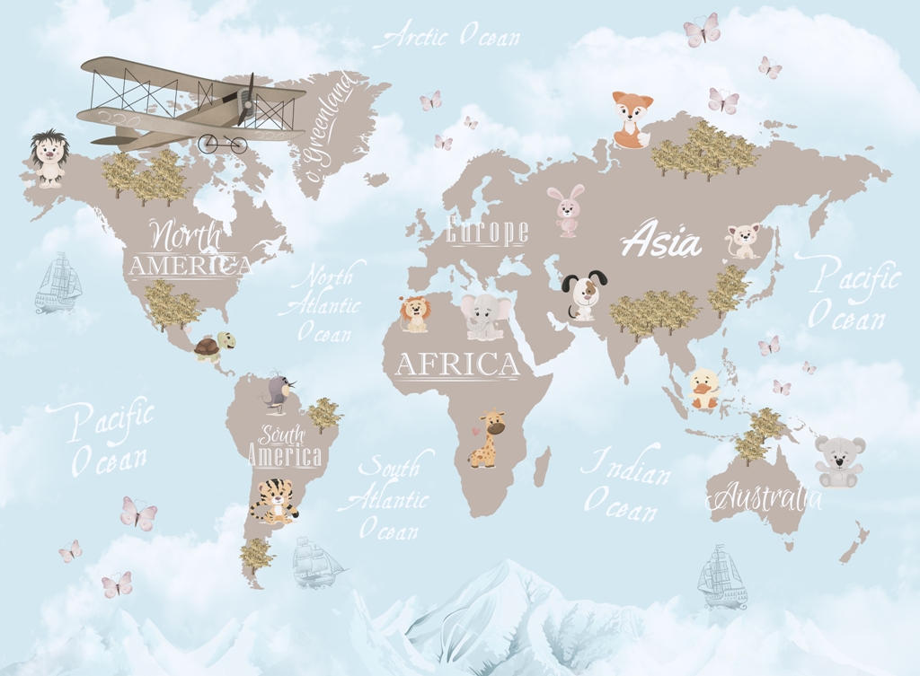 Letar du efter en originell dekoration för din interiör som kommer att locka uppmärksamheten hos alla dina gäster? Denna väggmålning med ett motiv av kontinenter bland molnen kommer att vara ett utmärkt val! Tack vare den unika designen kommer ditt rum att få en originell karaktär och bli en plats full av magi.