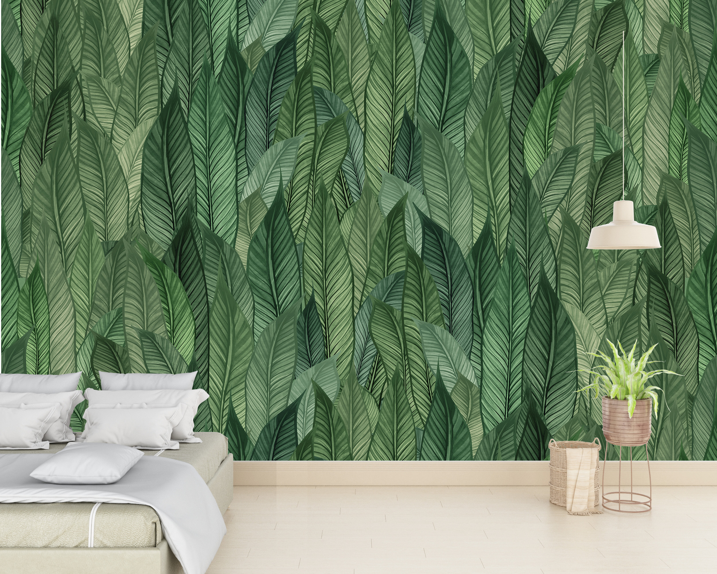 - BADRUM, Fototapet, KONTORET, MURAL, NATUR, Rum, SOVRUM, TROPISKA LÖV, VARDAGSRUM