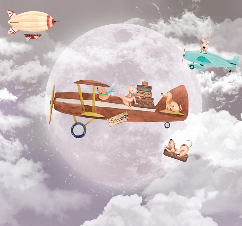 Njut av den bedårande utsikten på fototapeten Dogs on a Plane!