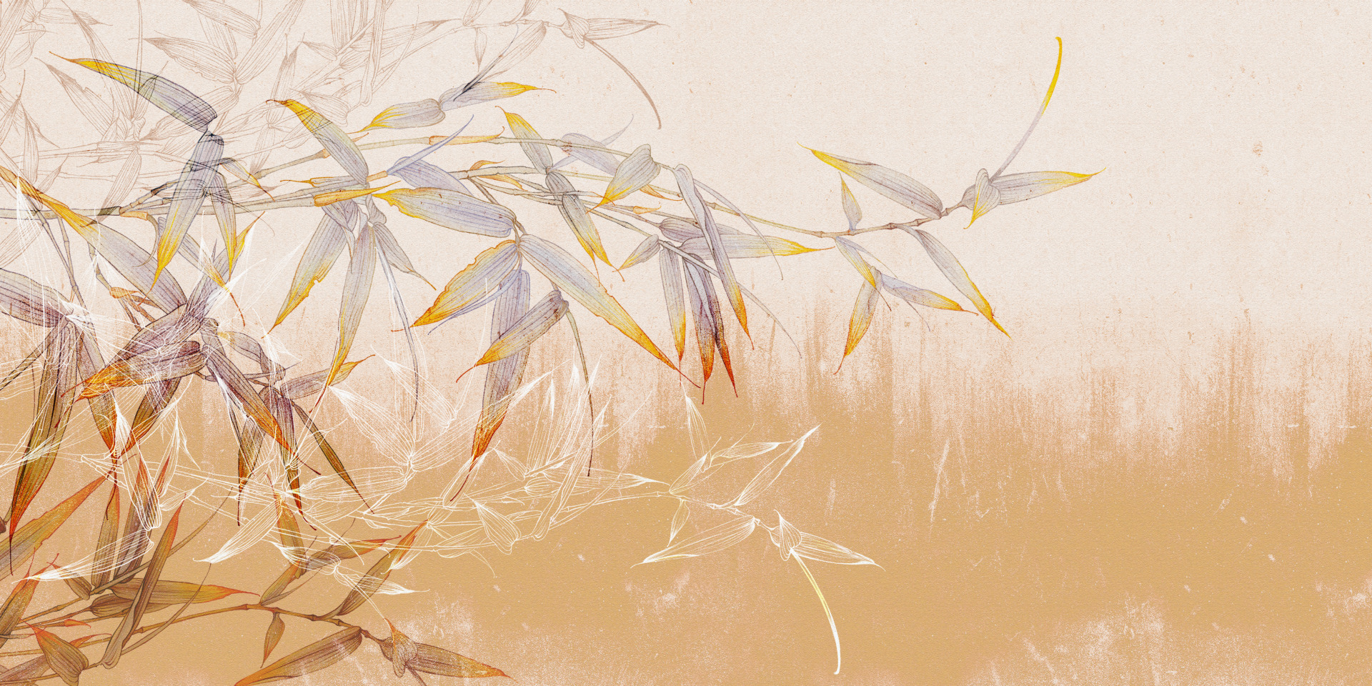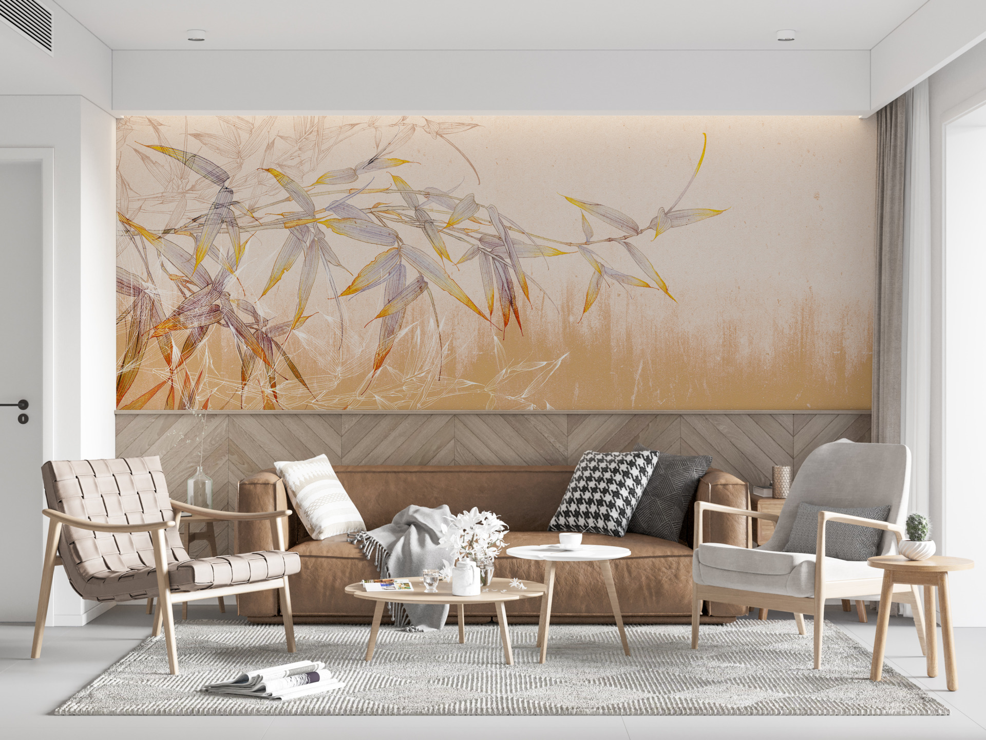 Om du drömmer om en oas av lugn i ditt hem kommer Bamboo Leaves On Apricot Wall väggmålning att bli en hit. Det ger din inredning en exotisk känsla och gör att du kan koppla av omgiven av naturen, även om verkligheten utanför fönstret är grå.