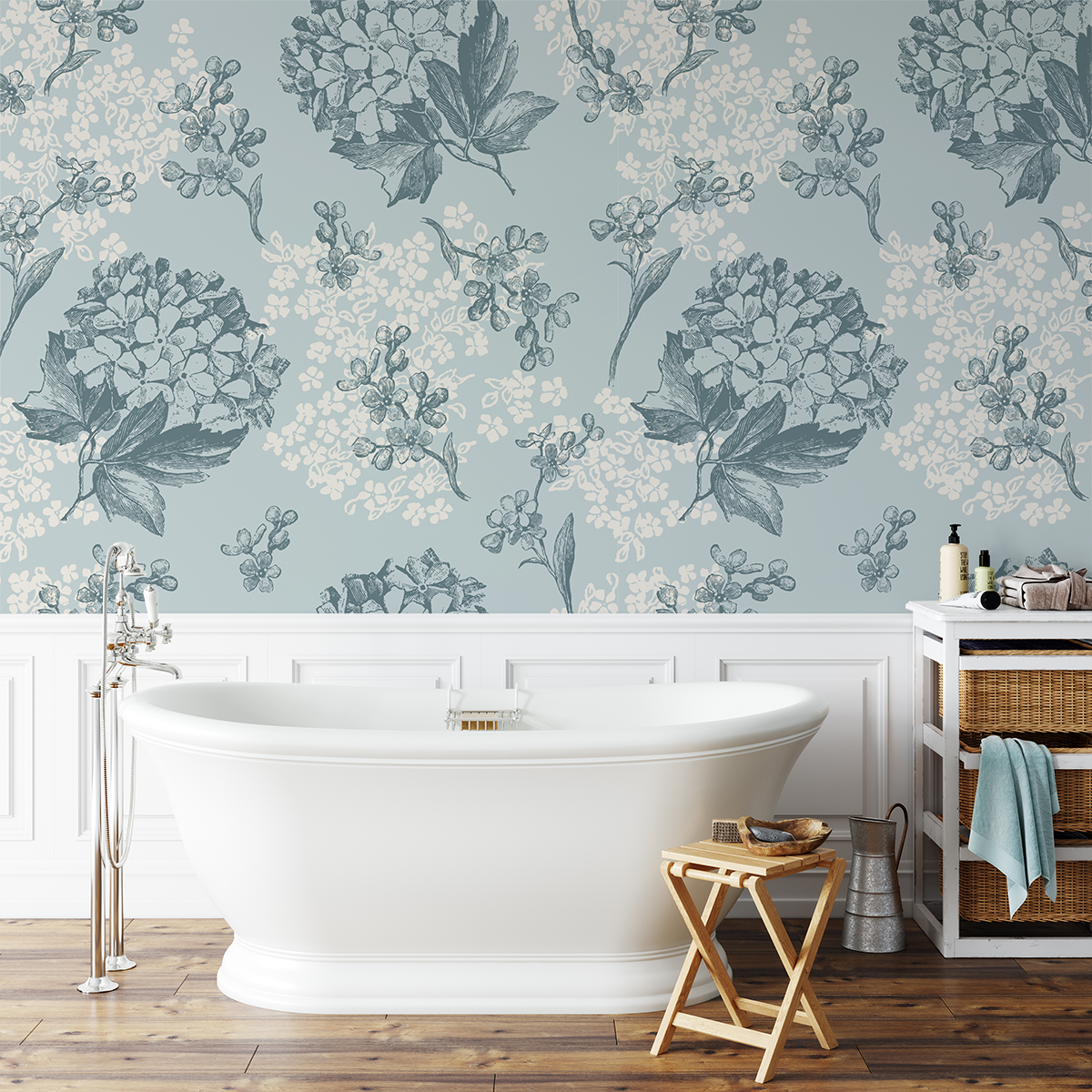 Ge din interiör harmoni, klass och delikat skönhet med fototapeten ”Blue Nostalgia”. Detta sofistikerade mönster inspirerat av klassiska botaniska gravyrer kombinerar serietidningsdetaljer av hortensior och små blommor med svala nyanser av blått och vitt. Det är en komposition som lugnar sinnena, tillför lätthet till rummet och introducerar en subtil touch av vintagecharm.
