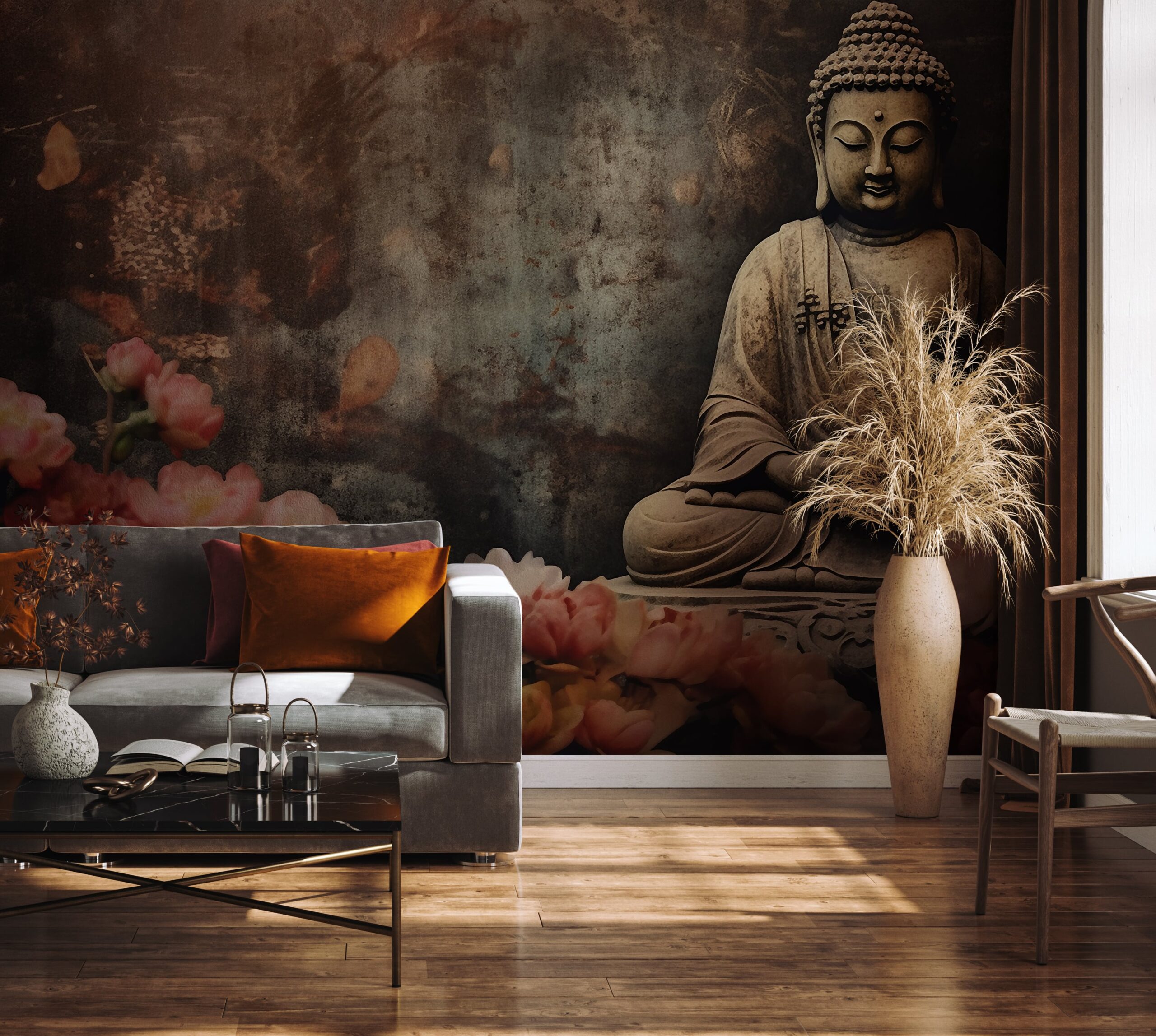 Detta är det perfekta alternativet för dem som söker lugn, inspiration och andligt djup i sina utrymmen. En fototapet kommer subtilt att betona karaktären hos ett vardagsrum, sovrum, kontor eller avkopplingsutrymme, och skapa en plats full av harmoni och charm.