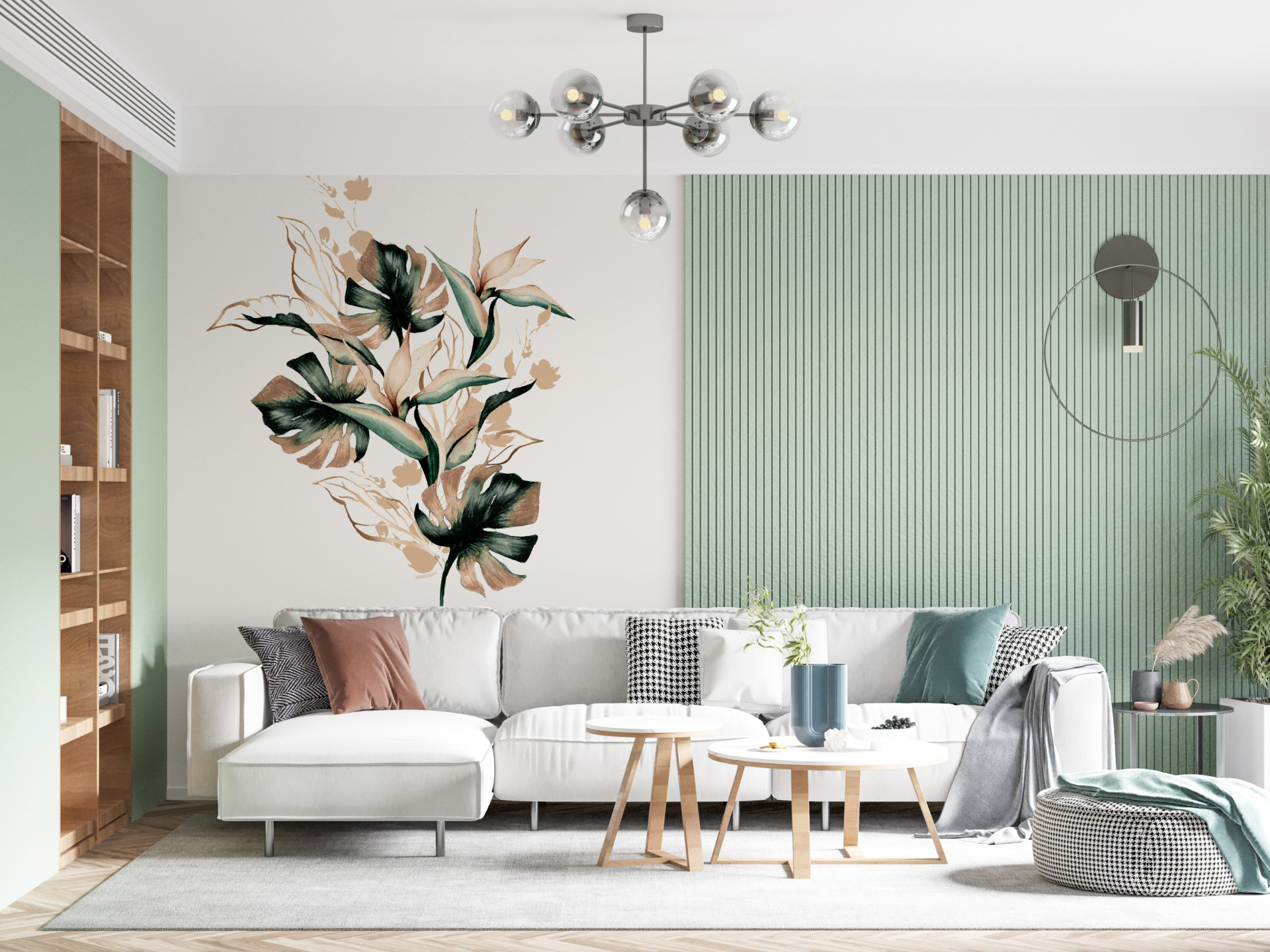 Motivet med bladbuketten är det perfekta valet för dig som uppskattar naturen och enkelheten. Denna väggmålning skulle fungera bra i ett sovrum, vardagsrum samt på ett kontor eller i en studie. Tack vare sin mångsidighet smälter den perfekt in i en mängd olika designstilar – från modern till klassisk eller rustik.
