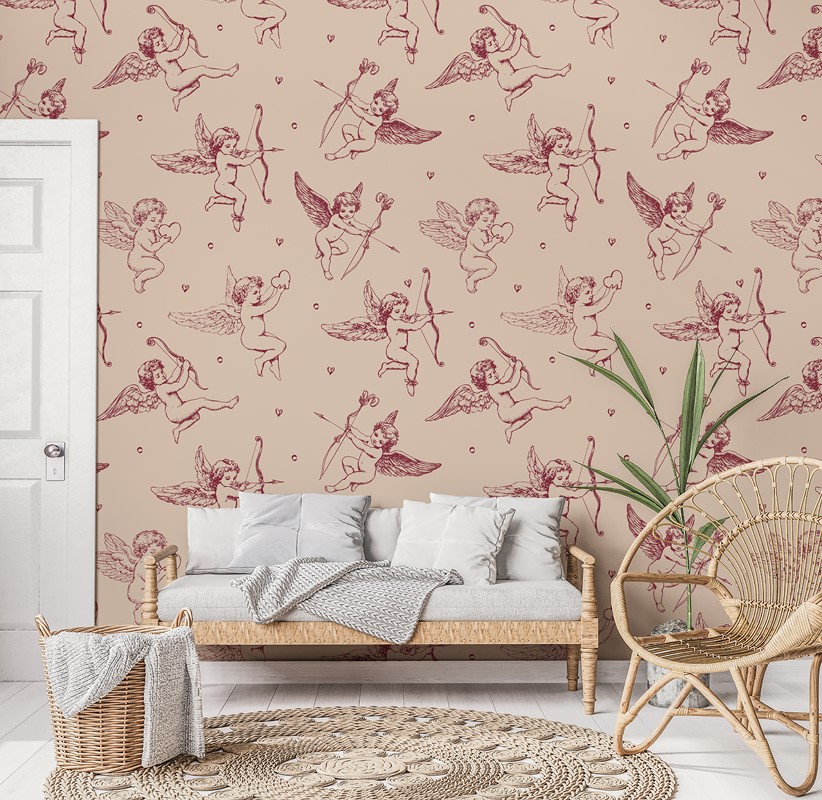 Fototapeten ””Cupid Full of Love”” är en romantisk väggdekoration som ger värme, känsla och en touch av subtil charm till din inredning. Den charmiga bilden av Cupid, omgiven av delikata detaljer och en pastellfärgpalett, skapar en subtil komposition – perfekt för ett vardagsrum, sovrum, ungdomsrum eller avkopplingsutrymme. Denna dekoration är för dig som värdesätter kärlekssymbolik, konstnärlig estetik och mysiga inredningar. Fototapeten ”Cupid Full of Love” ger romantik, elegans och en personlig touch till dina arrangemang och skapar ett utrymme som främjar drömmar och skönheten i relationer.