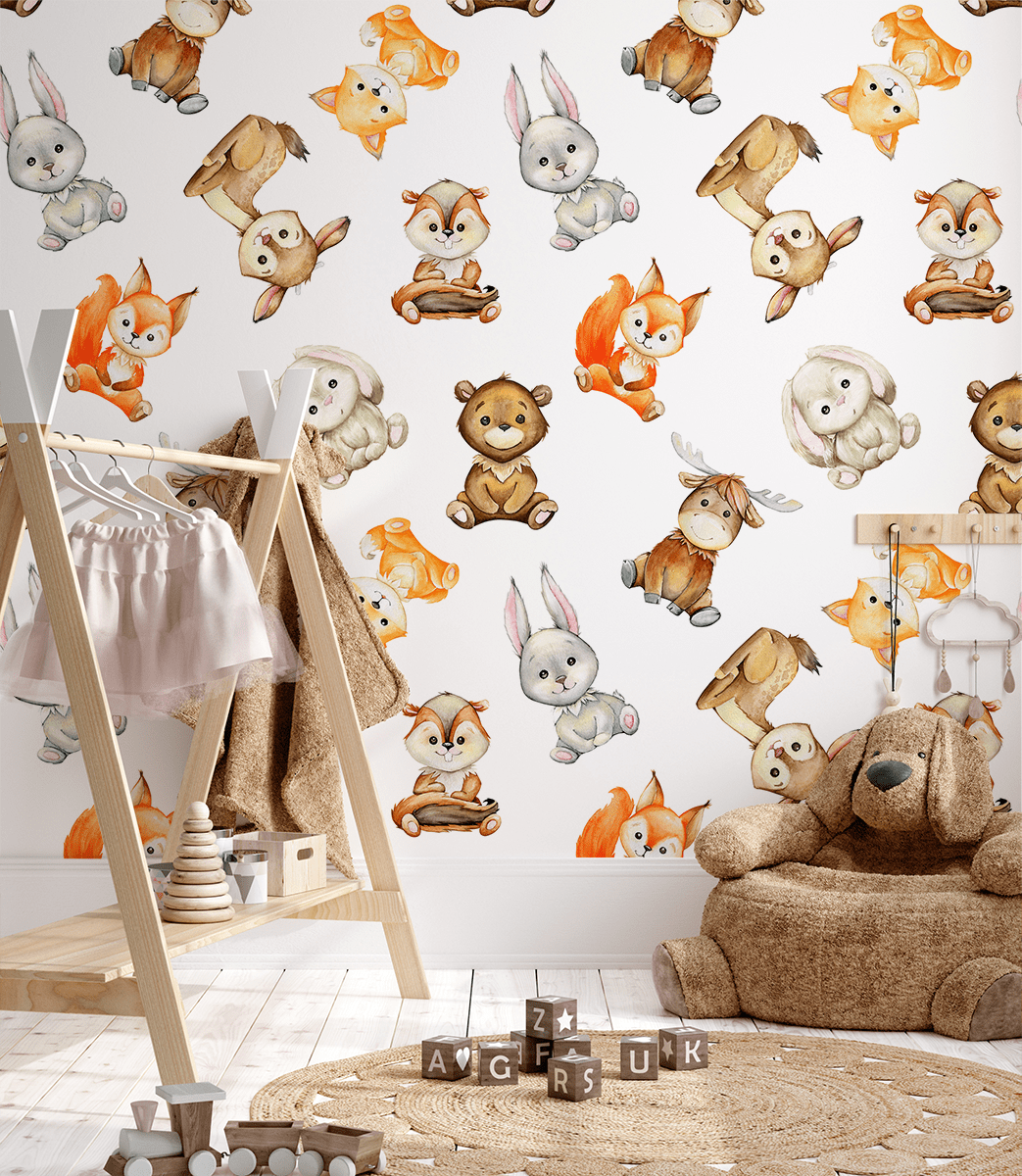 Tapeten ”Land of Little Ones” – en charmig värld av vänliga skogsdjur, glädje och värme i ett barnrum