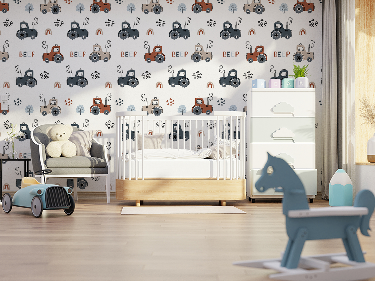 En fototapet med traktormotiv är ett tidlöst val för föräldrar som vill skapa en inredning full av glädje, positiv energi och ett barns fantasi. Det är en kombination av lärande, roligt och charmig stil i ett.