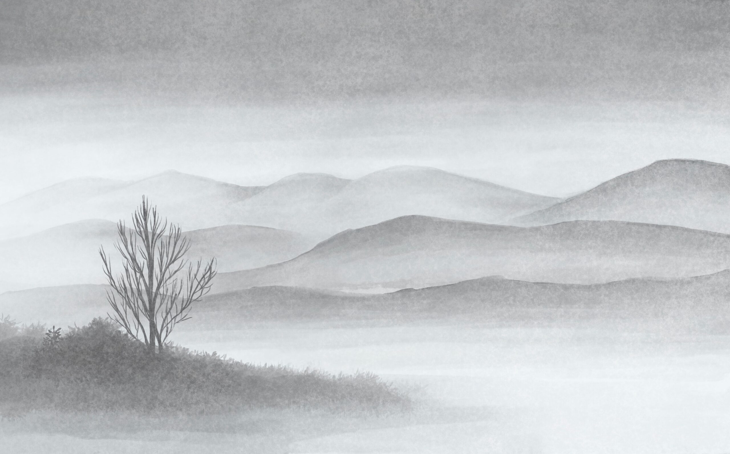 Fototapet ”Misty Horizon” – landskapsstil, monokromatisk harmoni och en unik dekoration inspirerad av naturen