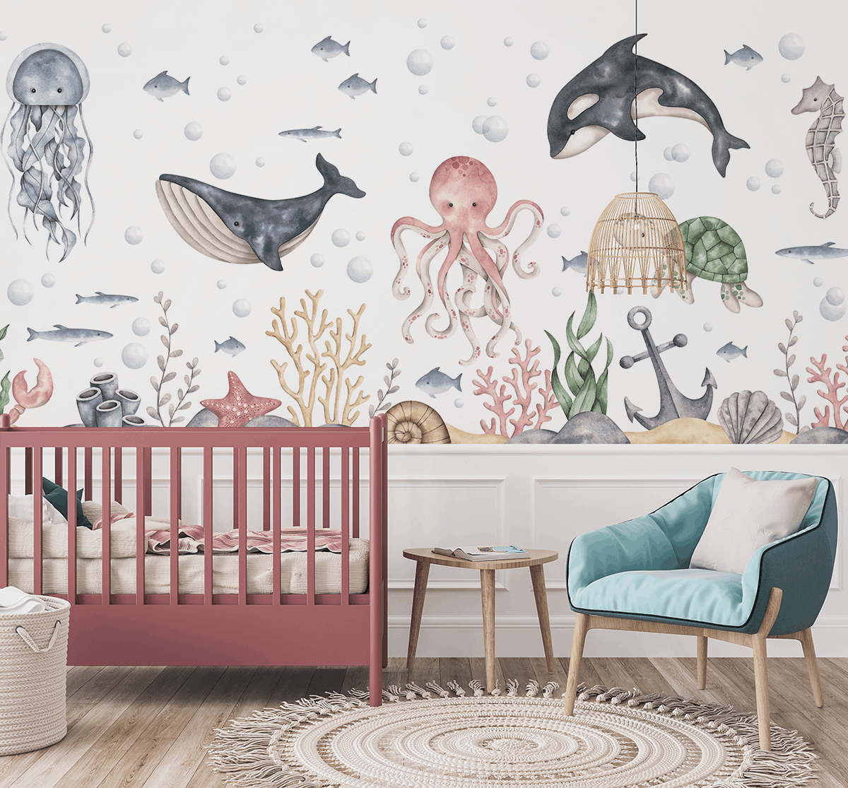 Det är mer än bara dekoration – det är ett färgstarkt äventyr som förvandlar ett barnrum till ett sagoland fullt av vänner från havets djup.