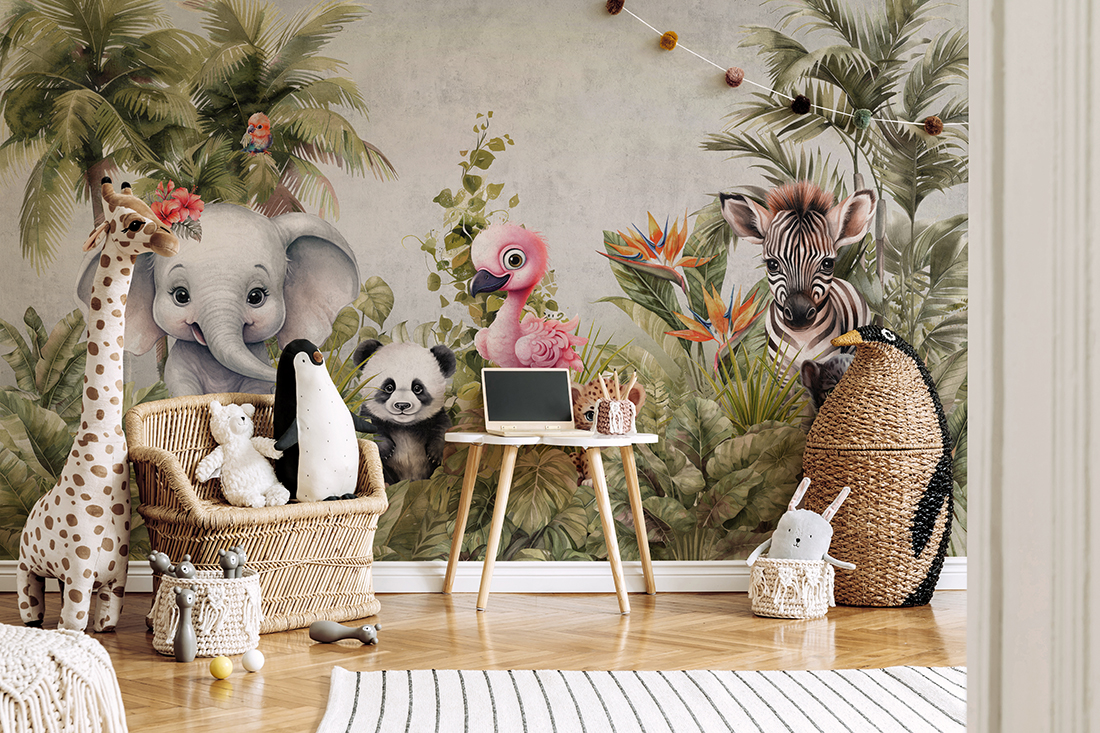 Fototapet “Djur i djungeln” – en färgstark värld av natur i ett barns rum
