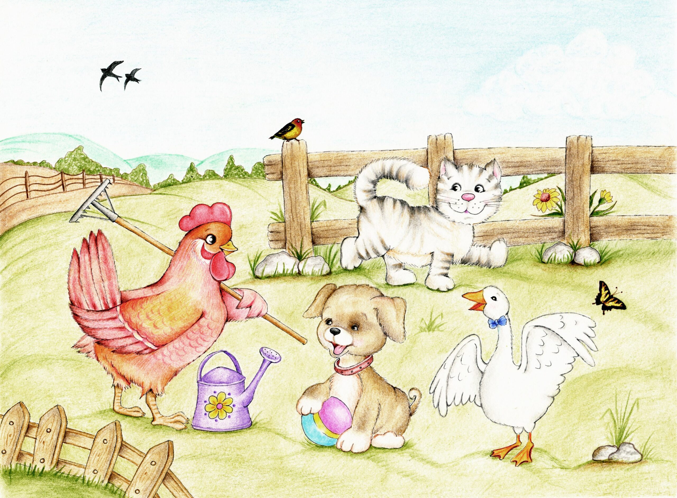 Fototapeten ”Farm Full of Joy” – en färgstark värld av skoj, vänskap och glädjefylld natur för barn
