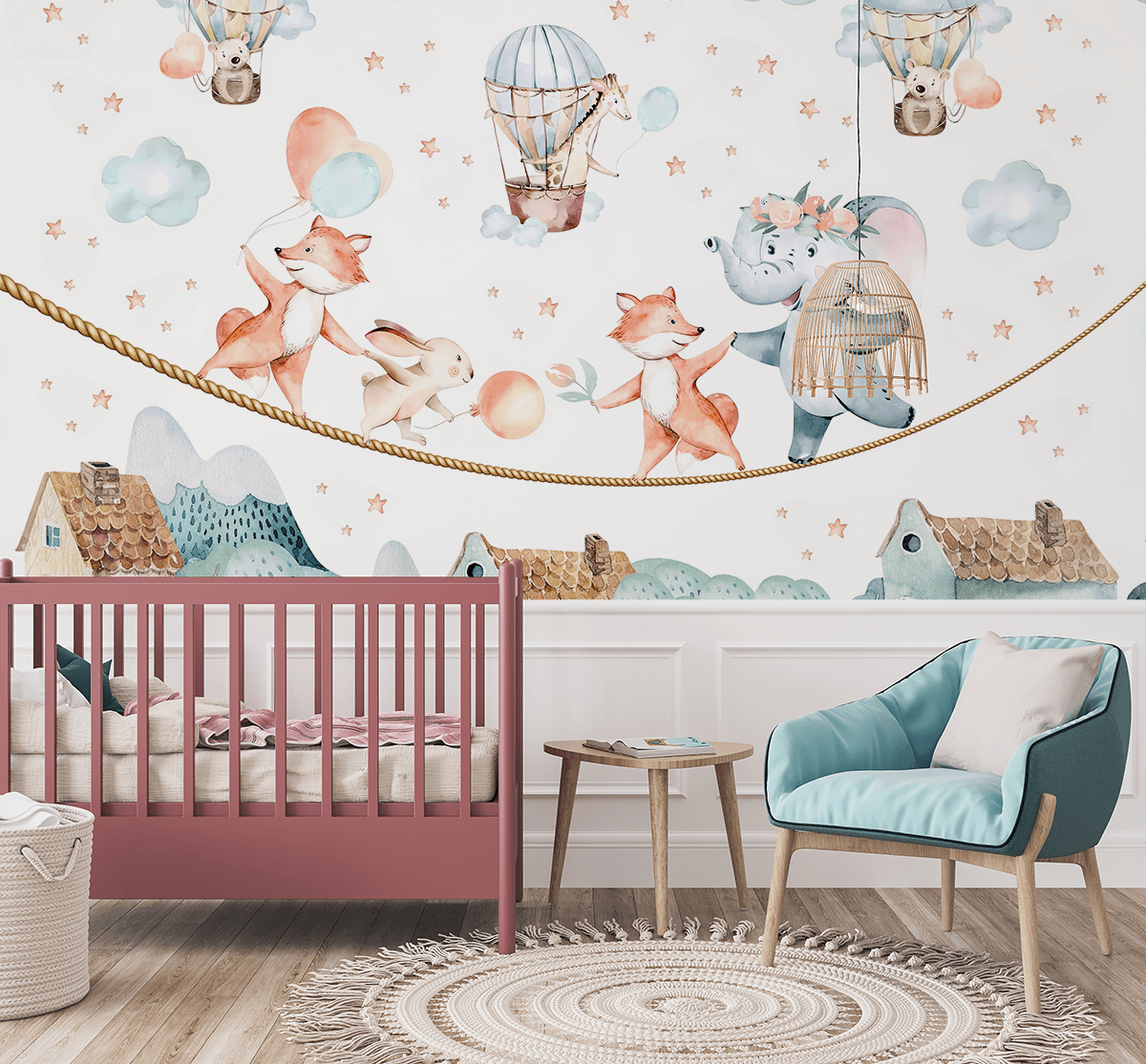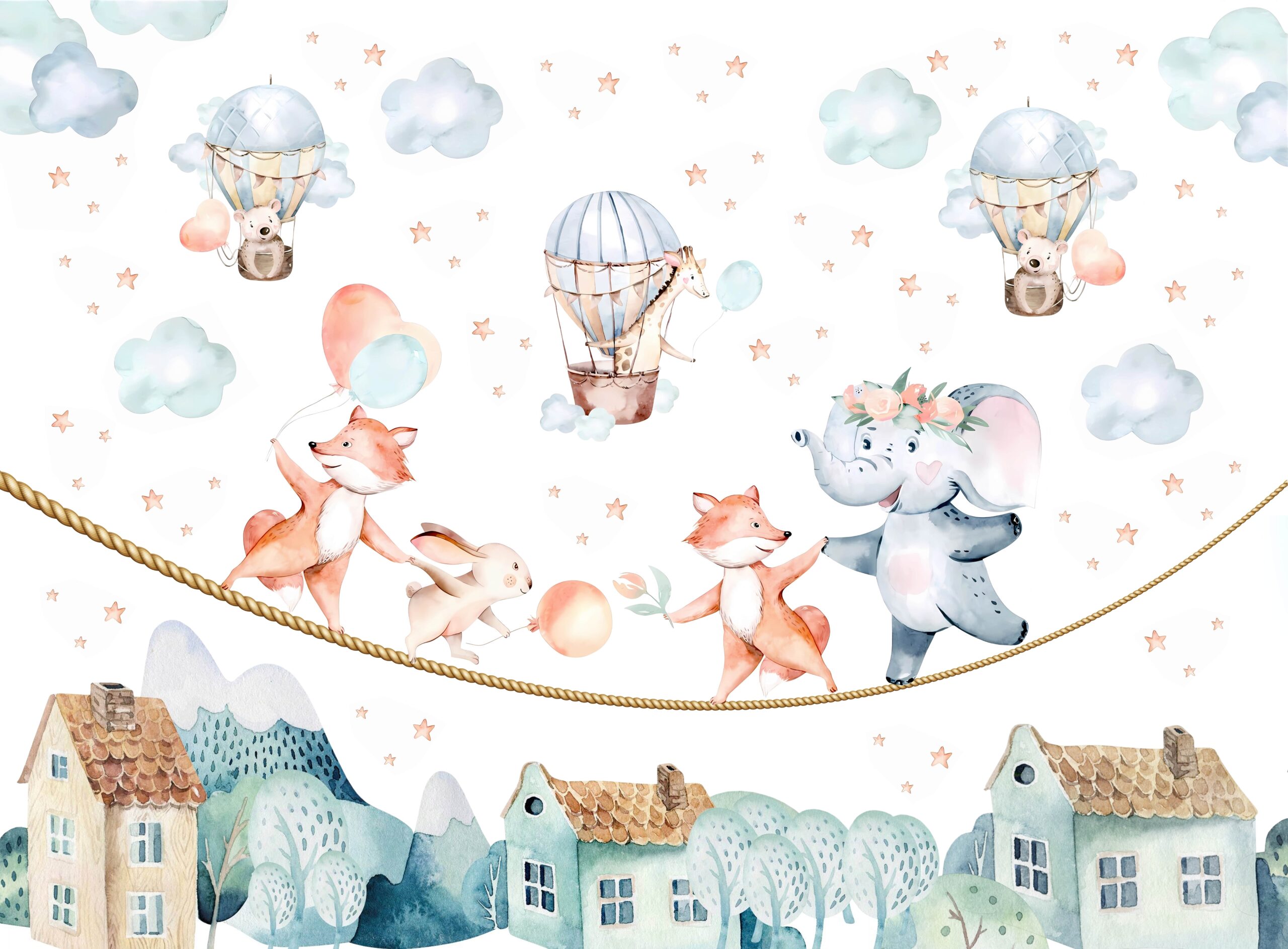 Introducera en unik värld full av färgglada ballonger, söta djur och mjuka moln i ditt barns rum med fototapeten ”Walking on Clouds”. Detta delikata pastellmönster tar dig till fantasins land, där varje dag är full av skoj och vänskap. Ljusa färger och mjuka former skapar en atmosfär av lugn och bekymmerslöshet, perfekt för de små.