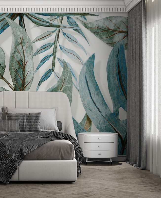 Naturligt växtmotiv – gröna blad gör interiören mer mysig och visuellt fräsch.
